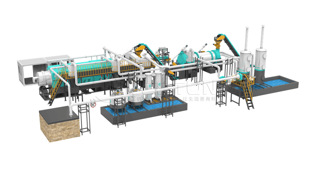 桉樹皮碳化爐由烘干爐(非必選)、炭化主爐、冷凝器(非必選)、冷卻塔等部分組成; 炭化主爐由主滾筒、機殼、燃燒室等部件組成